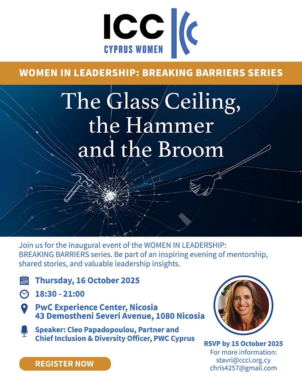 Women in Leadership: Breaking Barriers Series – The Glass Ceiling, the Hammer and the Broom Please enable JavaScript in your browser to complete this form.Please enable JavaScript in your browser to complete this form.Name & Surname *Company Name *Telephone Number *Email Address *Are you interested in becoming a member of ICC Cyprus Women? *--- Select Choice ---YESNOI am already a memberPersonal & Company Data *I hereby authorise the ICC Cyprus Women, and the Cyprus Chamber of Commerce and Industry to use my personal data, as well as our company data for promotional purposes. I also consent that the CCCI might use the aforementioned data for informing us about other activities organised by the CCCI and/or the Business Associations operating under its auspices.NameSubmit